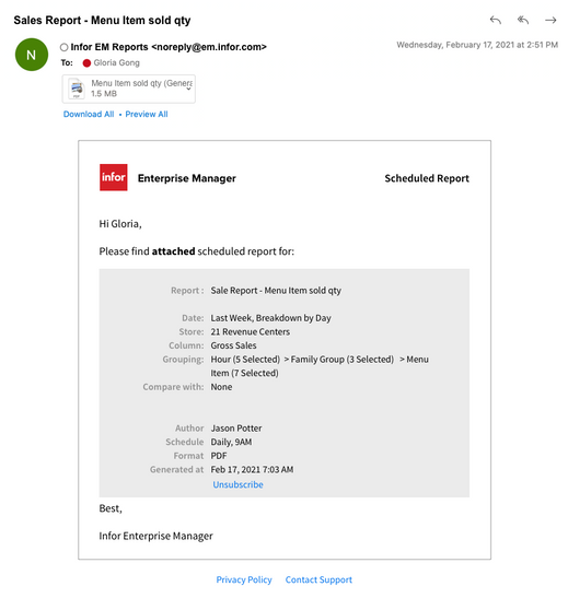 The back-of-house reporting tool for Infor's cloud-based restaurant POS system.